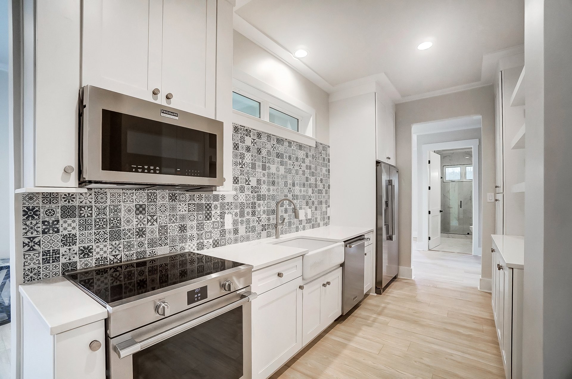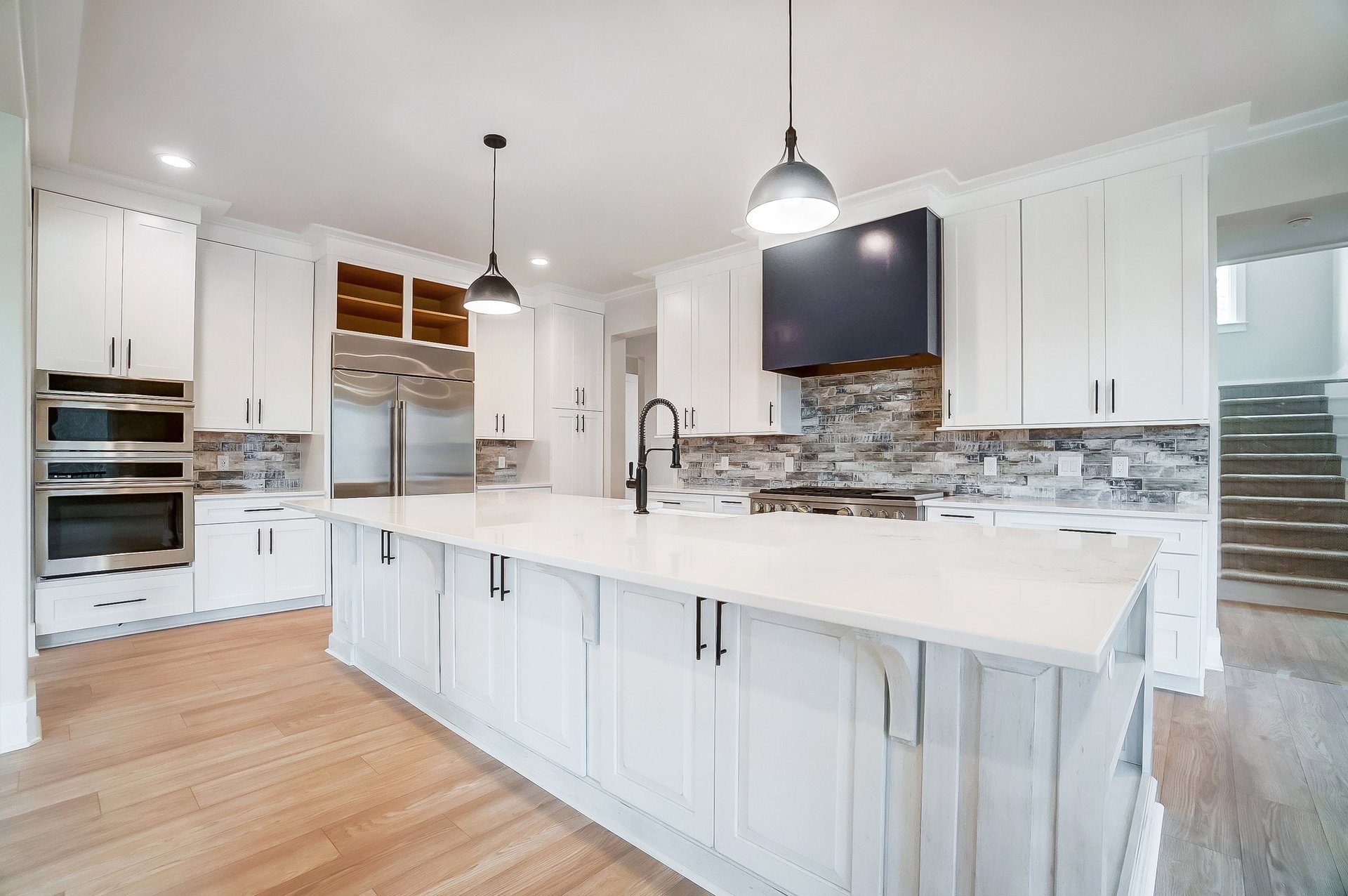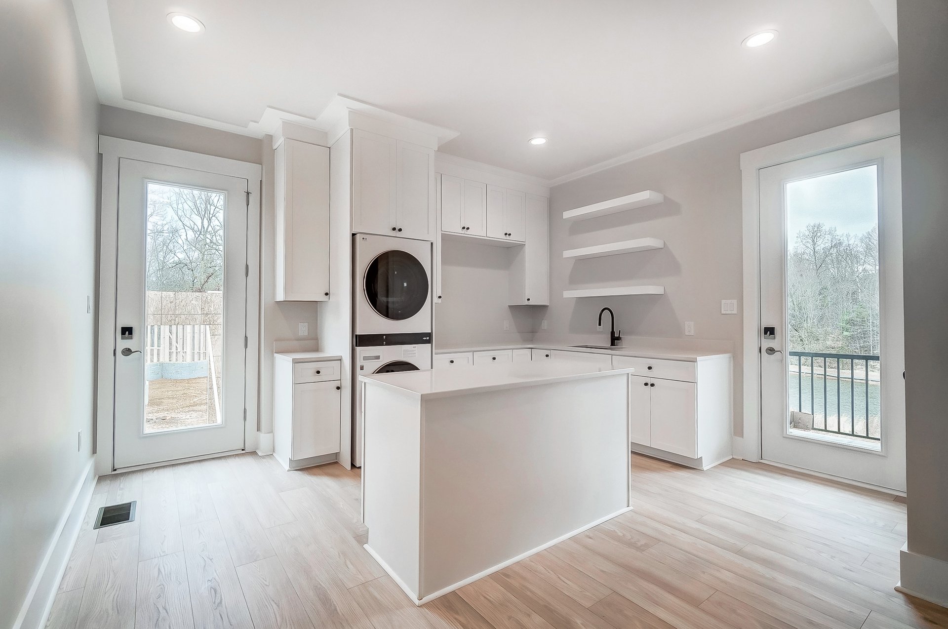 The clients chose a modern farmhouse style, but the floor plan was 100% custom, not a modified template. An in-law suite was designed as a hybrid space that could function either as an integrated part of the home or a fully independent living unit with its own bedroom, living area, and kitchenette.