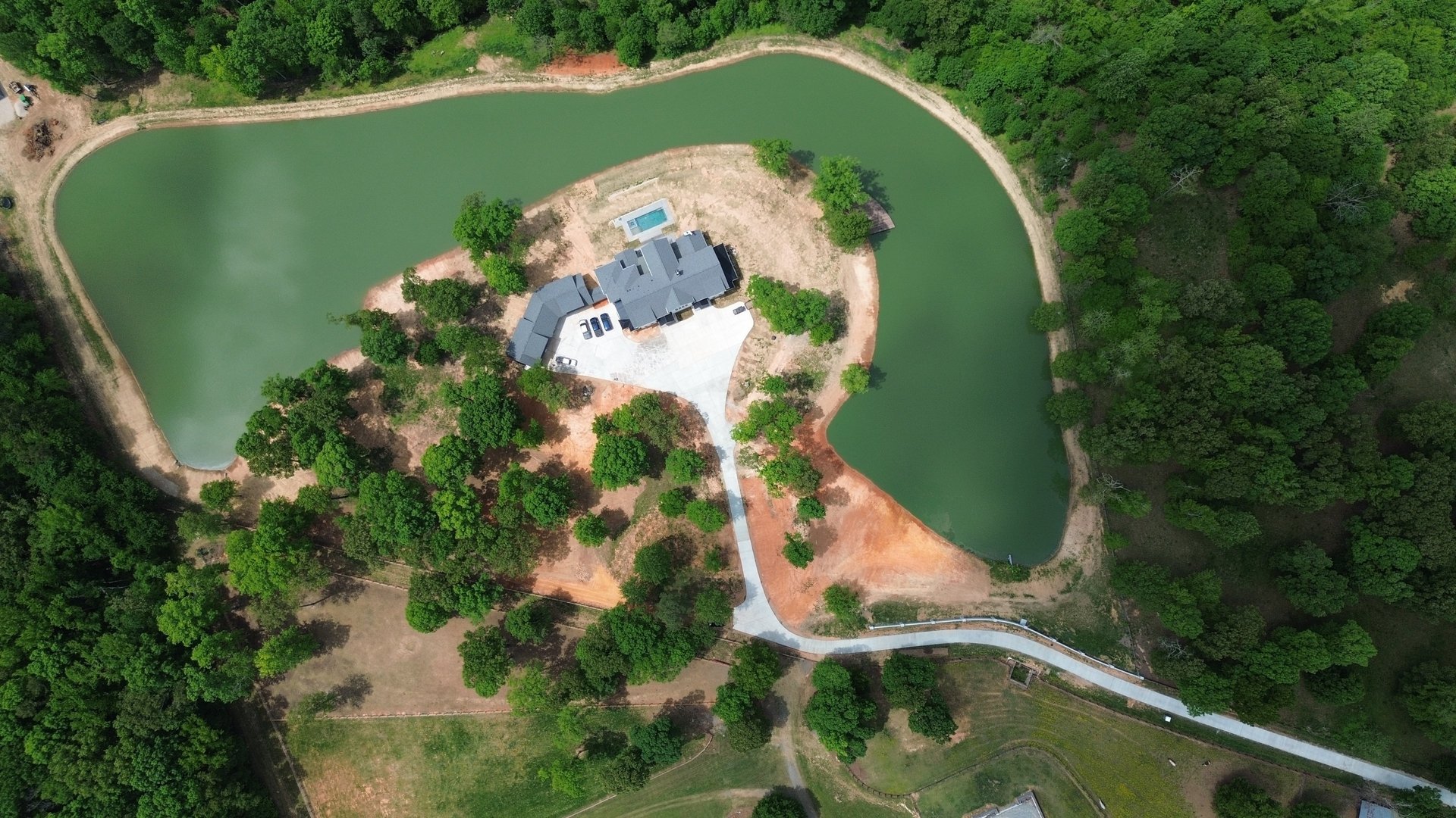 Located on a private 20-acre rural property with a 6-acre lake, the site offered ample space and flexibility. Sitting near the top of the property, the homesite provided views, privacy, and the ideal position for the family’s future pool.